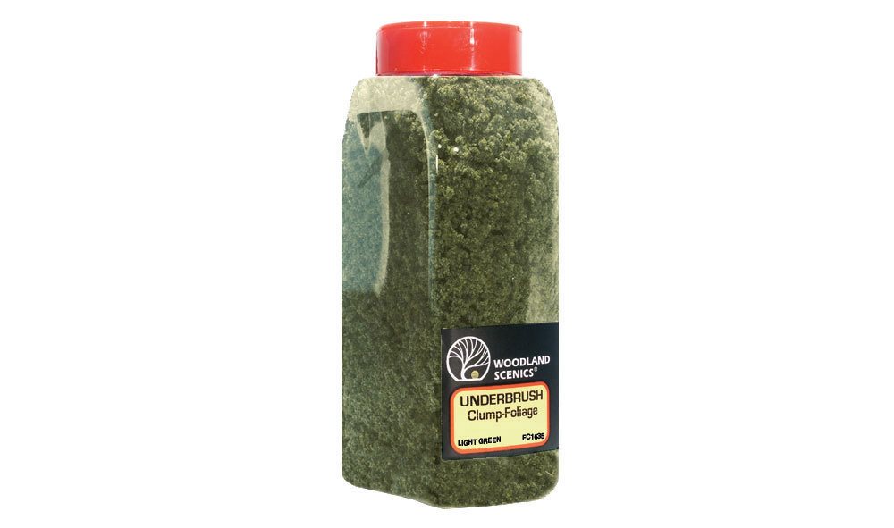 Opgrader dit modeljernbanelandskab eller diorama med Woodland Scenics FC1635 Underskov i lys grøn.